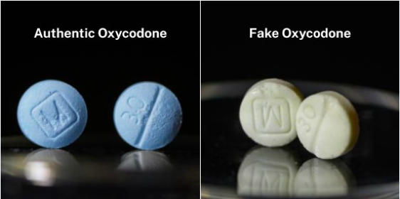 - counterfeit medication purchased online such as fake oxycodone, Adderall, and Xanax